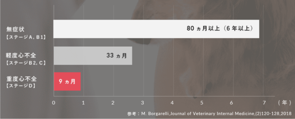 ステージAやB1の時期は比較的長く安定しますが、咳や呼吸の変化が出始めるステージB2やC以降は心負荷が増し、進行が早まります。